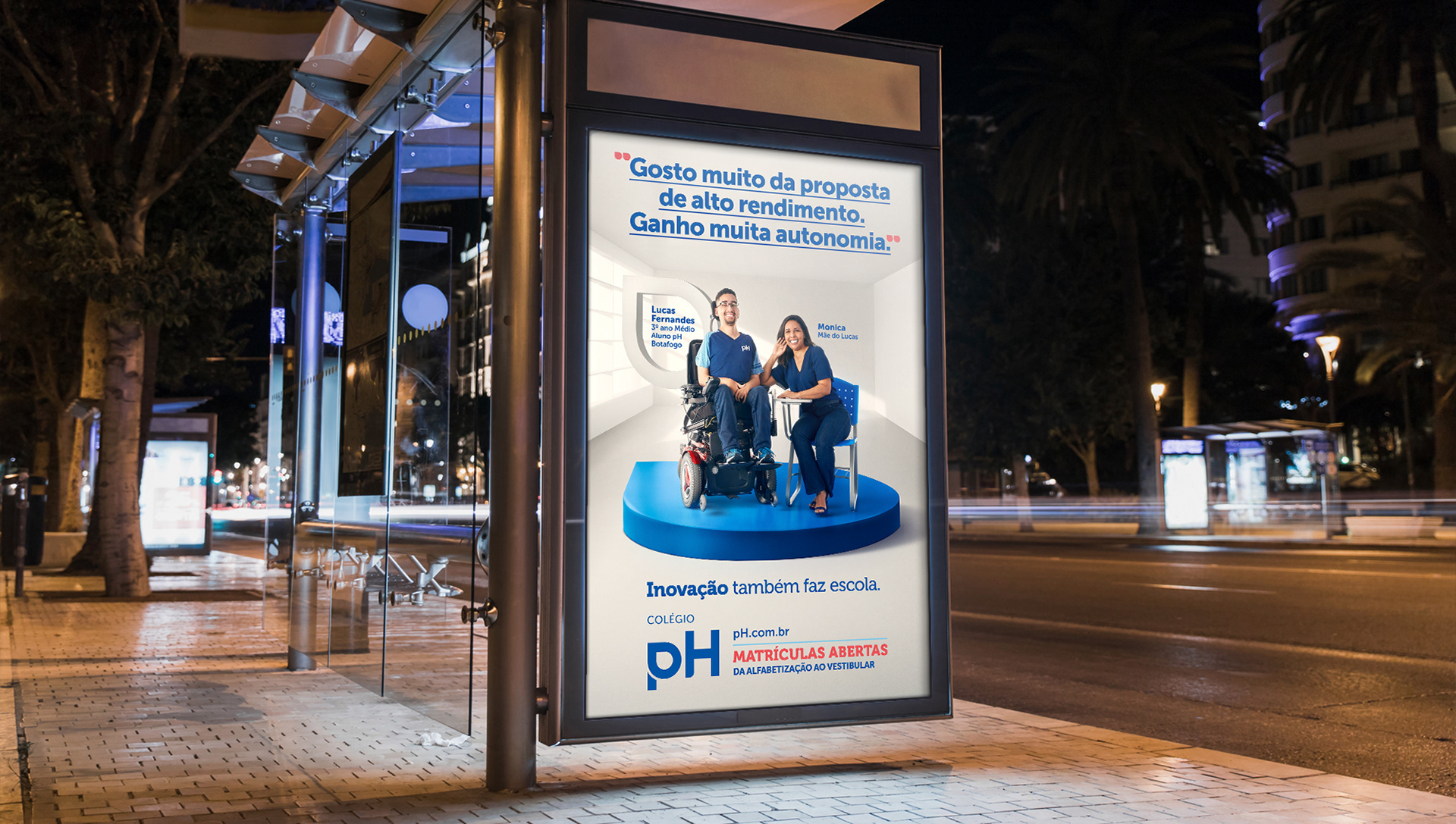 Campaign for Colégio pH with testimonials about the school with parents and students.